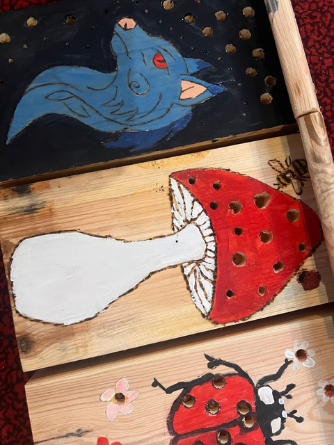burning, carving, and painting woodland-inspired designs